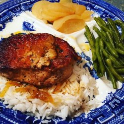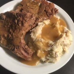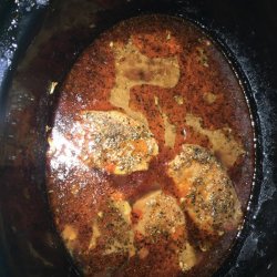 1In a large bowl, whisk together the olive oil, chicken broth, garlic, paprika, garlic powder, poultry seasoning, oregano, and basil. Pour into the slow cooker. Cut small slits in each pork chop with the tip of a knife, and season lightly with salt and pepper. Place pork chops into the slow cooker, cover, and cook on High for 4 hours. Baste periodically with the sauce.