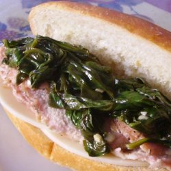 This recipe makes enough to fill 4 to 6 sandwiches. The traditional roast pork sandwich is made with provolone cheese; Manchego has slightly stronger flavor, which is a great complement to the pork and greens. If you can't find Manchego, use provolone.