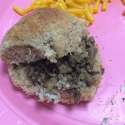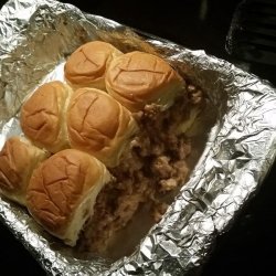 3Lay the bottoms of the dinner rolls on the prepared baking sheet. Spread the cheese and beef mixture on the bottom half of each roll. Replace the tops. Cover with another sheet of aluminum foil sprayed with cooking spray.