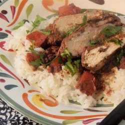 "A straightforward version of the classic Chicken Mole. Chicken breasts are simmered in a dark tomato chile sauce with a hint of chocolate. Serve with rice or corn tortillas."