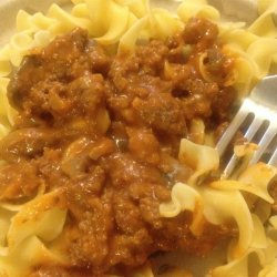 "Easy and delicious stroganoff recipe using ground beef instead of beef cubes. You can also cook this in a slow cooker. Serve over hot buttered noodles, add a loaf of bread, and you have a great meal. Wonderful on those cold, winter nights."