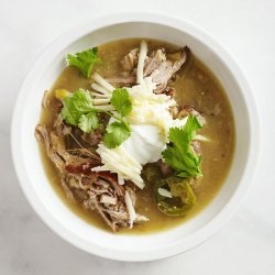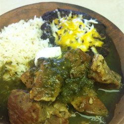 "An easy tomatillo and pork stew that is my boyfriend's favorite. Make it as spicy as you like by adding more or less jalapenos, or do not add any if you have a more tender palate."