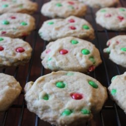 2Drop dough by teaspoonful onto baking sheet. Slightly push a few candies on top of each dough ball with remaining candies.