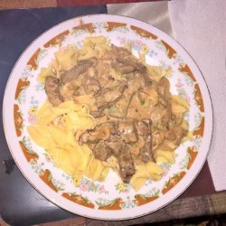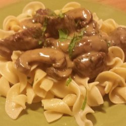 "This is a fairly lean version of beef stroganoff, as most recipes call for more cream. This is something you can easily adjust to your tastes. I like a little thicker version, with just enough sauce to coat the meat and noodles."