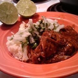 "An authentic Mexican dish - chicken slow cooked in a delectable sauce of chiles with a rich, never overpowering, chocolate background. Wonderful served with warm corn tortillas, rice and beans. Plan to have quite a mess to clean up afterward!"
