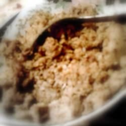 6Press the mixture into the baking dish. Bake 1 hour in the preheated oven, or until the top is brown and crisp.