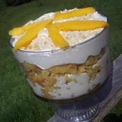 "Ah, nothing like the sweet taste of the tropics! Using my leftover coconut bunny cake I created a tiramisu featuring the tropical flavors of pineapple, mango, ginger, and macadamia nuts. My cake was a white cake but a leftover yellow cake would work just as well. Sliced almonds can be substituted for macadamia nuts."