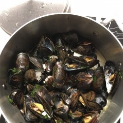 "This seriously delicious drunken mussels recipe is one of the quickest shellfish preparations known to man. Bring a flavorful, wine-based broth to a boil, add mussels and cover; cook until they open, and eat. That's it!"