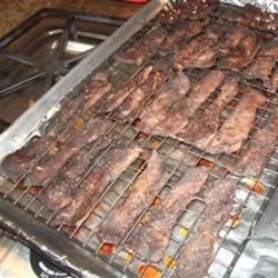 "My husband and I wanted to start making our own jerky, but couldn't find a recipe here to suit our tastes, so I made up my own. It's not too strong, yet has a great after-taste. Enjoy!"