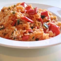 "This is a quick and easy way to spice up rice. Saute instant rice with onion, red bell pepper and green bell pepper. Then simmer with tomatoes and tomato juice and you've got a savory Spanish-style rice."