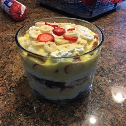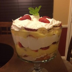 1Prepare pudding with milk according to package directions. In a trifle bowl or other glass serving dish, layer half the cake pieces, half the pudding, half the bananas, half the strawberries and half the whipped topping. Repeat layers. Cover and chill in refrigerator 4 hours before serving.
