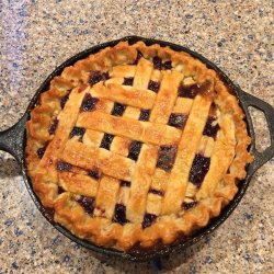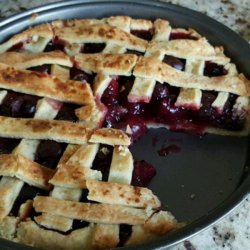3Line a 9-inch pie dish with a pastry crust, and fill with the cherry filling; sprinkle small chunks of butter over the filling. Top with the remaining crust, and crimp the edges to seal; cut several steam vents into the top crust with a sharp paring knife.