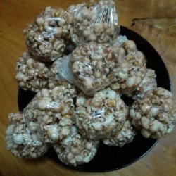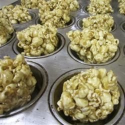 1In a saucepan over medium heat, combine the corn syrup, margarine, cold water, confectioners' sugar and marshmallows. Heat and stir until the mixture comes to a boil. Carefully combine the hot mixture with the popcorn, coating each kernel.