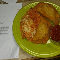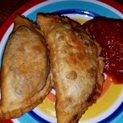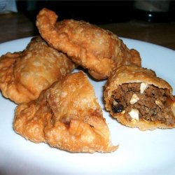 3Form the dough into 2 inch balls. On a floured surface, roll each ball out into a thin circle. Spoon some of the meat mixture onto the center, then fold into half-moon shapes. Seal edges by pressing with your fingers.