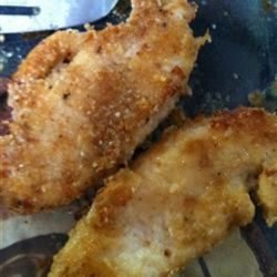 3Dip chicken breasts in garlic butter mixture, then roll in bread crumb and cheese mixture, coating thoroughly. Place coated chicken in the prepared baking dish. Drizzle with any remaining garlic butter mixture.
