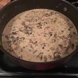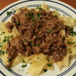 "A rich, creamy beef stroganoff. This recipe uses a roux to create a beef gravy that is then thickened with sour cream AND cream cheese. A little bit of zip is added using pepper flakes. Serve this over egg noodles."