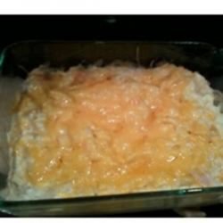 2In a medium bowl, combine the cream cheese, onion, mayonnaise, crabmeat, garlic powder, salt and pepper. Spread mixture into a 1 quart baking dish.