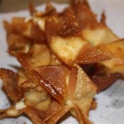 3Place approximately 1 teaspoon of the cream cheese mixture in the center of wonton wrappers. Moisten wrapper edges with water, fold over the mixture and pinch to seal.