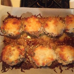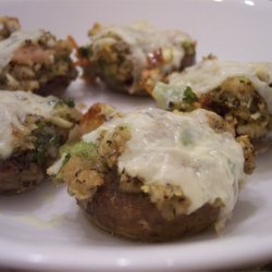 "Delicious mushroom caps filled with a clam stuffing! Very easy, and even better than the stuffed mushrooms from that famous Italian restaurant chain.... Garnish with lemon wedges when serving."