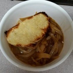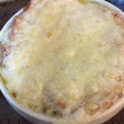 "A proven, favorite recipe for the best French Onion soup ever. White Zinfindel goes great with this soup, too. You can double the recipe pretty easy, and I even tripled it once. Make sure to keep the sugar down, if you do."