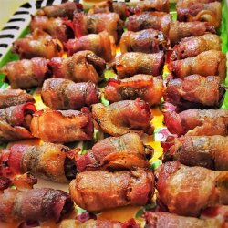 "An easy, quick appetizer that I first tasted at a Native American wedding ceremony. Dates are stuffed with almonds and wrapped in bacon!"