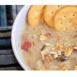 2Place mustard, salt, pepper, celery salt, and flour together in a bowl. Gradually whisk in water and chicken broth until well blended. Stir into potato mixture, and bring to a boil. Reduce to a simmer, and cook for 1 hour.