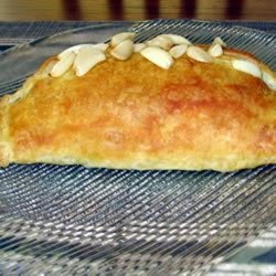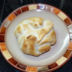 3Arrange brie on top of thawed puff pastry. Top the cheese with the apple and onion mixture. Fold puff pastry over the cheese, and pinch closed. Brush with melted butter.