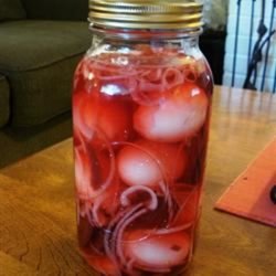 "My Pennsylvania Dutch grandmother, Florence Walter, used to make these. They are especially great for picnics. The combination of pickled eggs, beets, and onions is really something special. A great way to use up left-over Easter-eggs too!"
