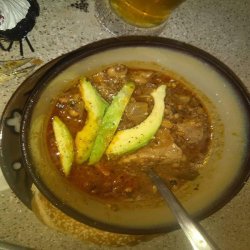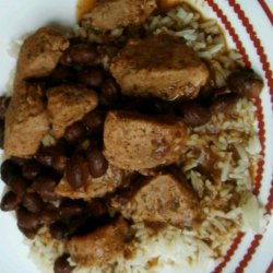 2Meanwhile, pour 3/4 of the black beans along with 1/4 cup water into the bowl of a blender, and pulse until finely chopped, but not quite smooth. Pour whole beans and bean puree into saucepan along with pork cubes, chicken stock, chorizo, and bay leaves. Bring to a boil over medium-high heat, then reduce heat to medium-low, cover, and simmer 30 minutes. Season to taste with salt and pepper before serving.