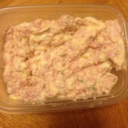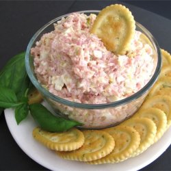 "Whip up a quick and easy ham salad spread with hard-cooked eggs, mayonnaise, and pickle relish. Serve with assorted crackers."