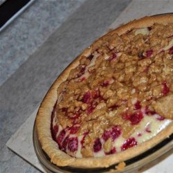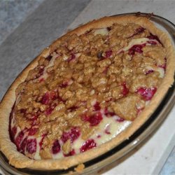 1In a bowl, combine 3/4 cup sugar and flour. Whisk in sour cream and vanilla. Arrange raspberries evenly in the pie shell. Spread sour cream mixture over berries.