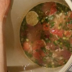 "Hot or cold outside, this soup is light and refreshing. I first enjoyed this dish while sitting ocean-side in Mexico. Goes great with a margarita or beer and a side of chips and salsa. Use whatever chilies you want (hot or mild) depending on the amount of heat you enjoy. Serve in bowls with crushed tortilla chips or strips on top."