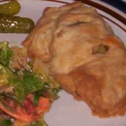 "Pie crust pastries filled with potato, onion, rutabaga and pork, then buttered and baked to a golden finish. Very easy to make. These freeze really well for a quick lunch. Use diced beef instead of pork, if desired."