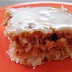 4Bake for 35 to 45 minutes in the preheated oven, or until firm. Allow to cool. Make a glaze using confectioners' sugar and enough of the milk to give it a drizzling consistency. Drizzle over bars before cutting into squares.