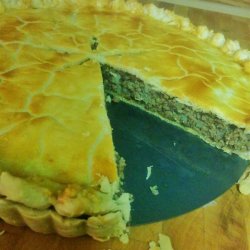 5Brush with beaten egg and sprinkle with paprika, if desired. Cut steam vent. Bake for 50 minutes at 350 degrees F (175 degrees C). If edges brown too fast, cover with a strip of foil. Serve warm.