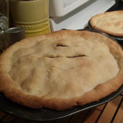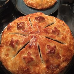 3Spoon the meat mixture into the pie crust. Place top crust on top of pie and pinch edges to seal. Cut slits in top crust so steam can escape. Cover edges of pie with strips of aluminum foil.