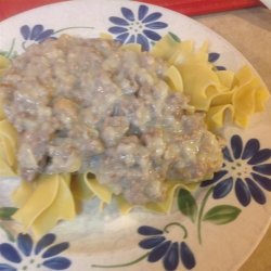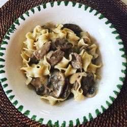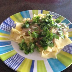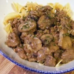 "I tried to find a recipe for beef stroganoff without sour cream because I didn't have any. The one I found didn't have white wine, which I like. So I took two recipes and combined them, tweaked to our taste. My husband and I really enjoyed what I came up with. Serve with Worcestershire (to add a little zing) over rice or buttered egg noodles."