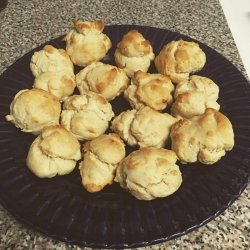 2In a large bowl, combine flour, baking powder, sugar, cream of tartar and salt. Stir in butter and milk just until moistened. Drop batter on a lightly greased cookie sheet by the tablespoon.