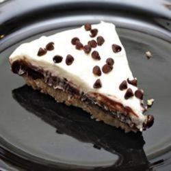 "This delicious crust is made with flour, chopped walnuts and butter, pressed into a 9-inch pie tin, and baked till lightly golden. It 's then filled with chocolate pudding that is then smothered with a sweetened whipped cream and cream cheese frosting."