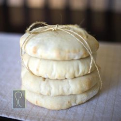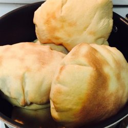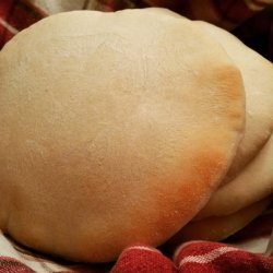 2Turn dough onto a lightly floured surface. Gently roll and stretch dough into a 12 inch rope. With a sharp knife, divide dough into 8 pieces. Roll each into a smooth ball. With a rolling pin, roll each ball into a 6 to 7 inch circle. Set aside on a lightly floured countertop. cover with a towel. Let pitas rise about 30 minutes until slightly puffy.
