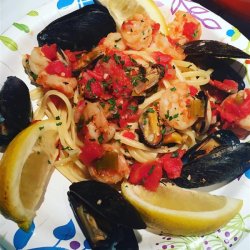 "A little more elaborate then a basic marinara but still simple, quick and relatively cheap! This recipe will feed 4 people who like to eat or 5-6 light eaters."