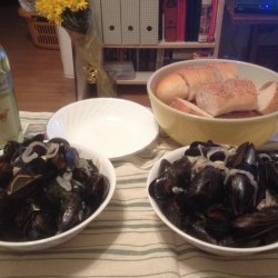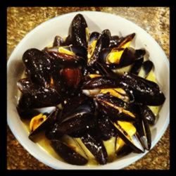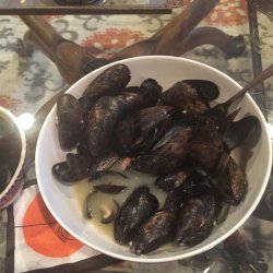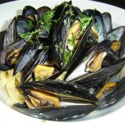 "Less is more when it comes to cooking mussels! Use only fresh mussels, which are tightly closed when you buy them. If you can't find fresh mussels, make something else! Serve with slices of fresh crusty bread to soak up the delicious broth."