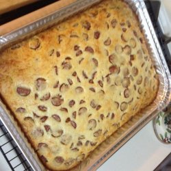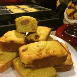 2Stir together the cornbread mix and the brown sugar in a large bowl. Whisk the eggs and milk in a small bowl until smooth. Fold the eggs and cheese into the dry mixture until moistened. Spoon mixture into muffin tins until 2/3 full. Add 1 hot dog half to each muffin.