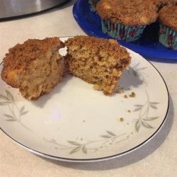 2In a large bowl, stir together 2 1/4 cups flour, baking soda and salt. In a separate smaller bowl, mix together the egg, buttermilk, 1/2 cup melted butter, vanilla and 1 1/2 cups of brown sugar until sugar has dissolved. Pour into the flour mixture and sprinkle the diced apple into the bowl as well. Stir just until everything is blended. Spoon into the prepared muffin tin, filling the cups to the top.
