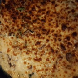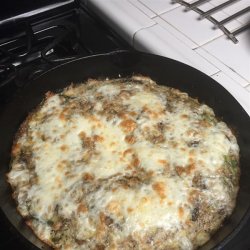 4Transfer the skillet to the preheated oven. Bake 10 to 15 minutes, until eggs are no longer runny. Top the mixture with Parmesan cheese and mozzarella cheese. Turn on the broiler, and broil until cheeses are melted and lightly browned.