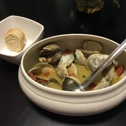 "I have always just called these chorizo steamed clams, 'Spanish Clams,' since it seems like there's some variation of this on every Spanish restaurant menu I've ever seen. Sometimes they use beer, or white wine, or sherry; and many varieties of clams can be used. But the common denominator is the spicy, Spanish-style chorizo. I like to serve steamed clams with grilled bread."