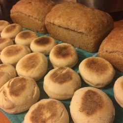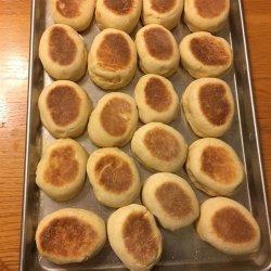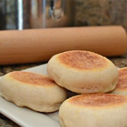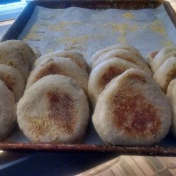 4Heat greased griddle. Cook muffins on griddle about 10 minutes on each side on medium heat. Keep baked muffins in a warm oven until all have been cooked. Allow to cool and place in plastic bags for storage. To use, split and toast. Great with orange butter, or cream cheese and jam.
