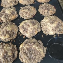 3In a small bowl, stir together 1/2 cup sugar, 1/3 cup flour, butter and 1 1/2 teaspoons cinnamon. Mix together with fork and sprinkle over unbaked muffins.