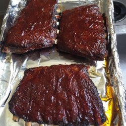 9Place rack meat-side up and return to oven, leaving foil open. Bake for 10 minutes, remove from oven, and brush another layer of barbeque sauce on meat-side only. Repeat baking and brushing with sauce 4 more times, for a total of 50 minutes baking time.