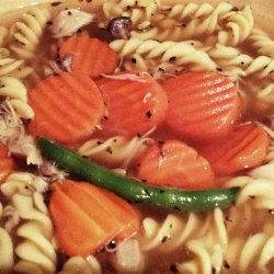 1Combine chicken, onion, carrots, celery, garlic, thyme, and bay leaf in a large stockpot; pour water into pot. Bring to a gentle simmer over medium-low heat, being careful not to let the mixture come to a boil. Once simmering, skim off any foam or impurities that accumulate on the surface of the water and reduce the heat to low.